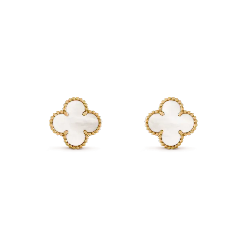 ヴィンテージアルハンブラピアス、イエローゴールド、ホワイトマザーオブパール。