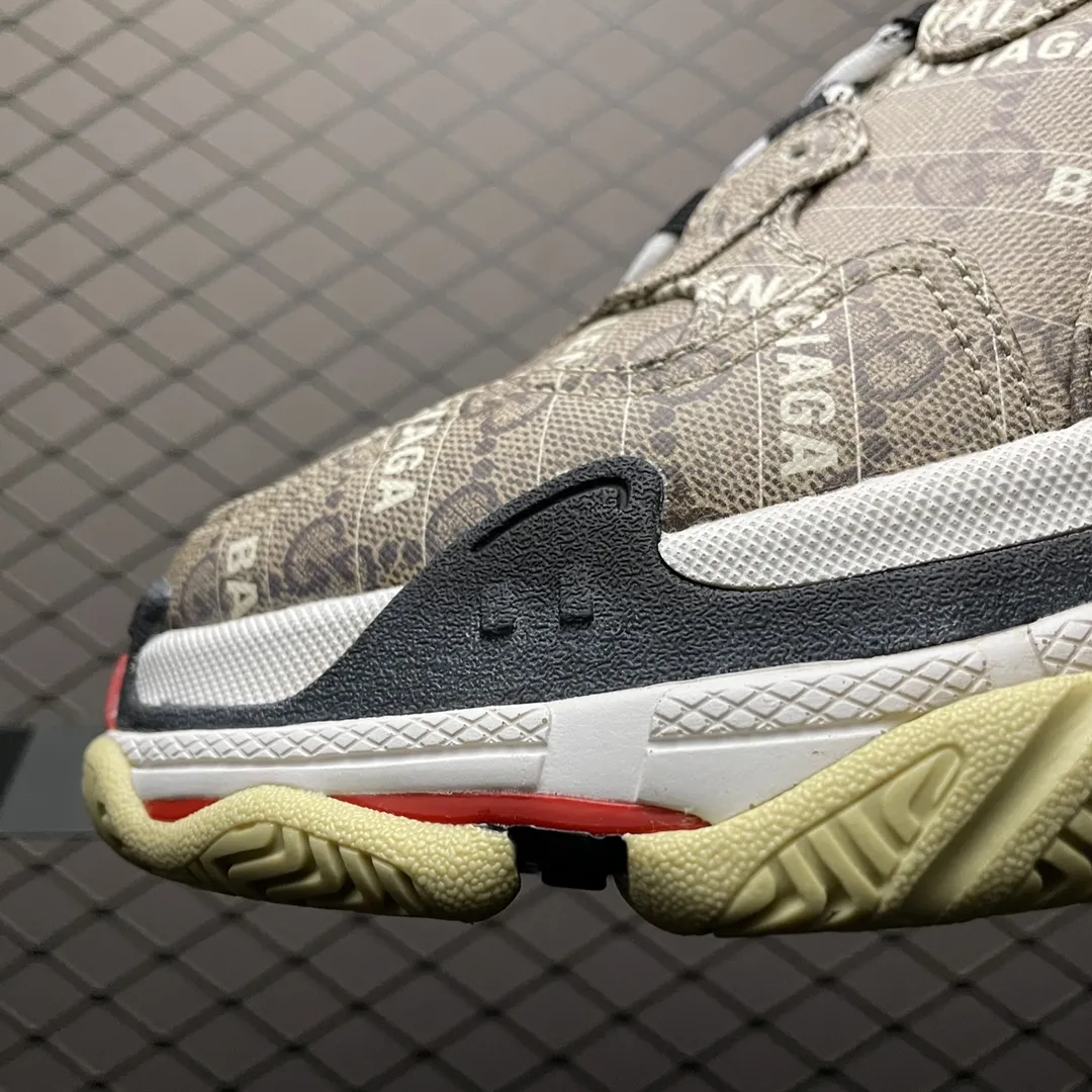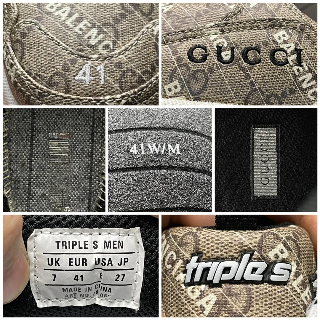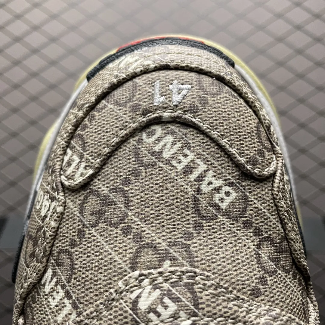 アレッサンドロミケーレは、最新コレクションでオマージュを表現し、バレンシアガの象徴的なシルエットにグッチのコードをユニークな作品に注入しています。 トリプル S スニーカーは、全体にバレンシアガ プリントが施されたシグネチャー GG スプリーム キャンバスで表現されています。