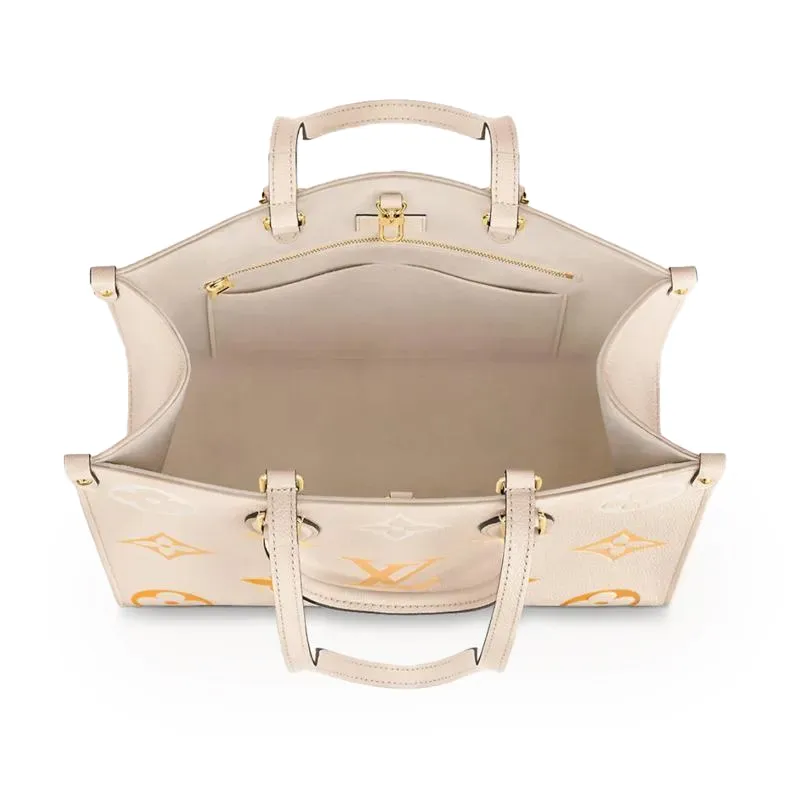 モノグラムパターンをエンボス加工したモノグラムアンプラント レザーに、繊細なカラーグラデーションを施した「オンザゴー MM」。「バイザプール」カプセルコレクションの1つです。手持ちやショルダーキャリーでもお楽しみいただけるように、長短2種類のハンドルをあしらいました。ノートパソコンなどの必需品を持ち運べる、収納力に優れた内装も魅力。遊び心溢れるエスプリが薫るレザーのチャームに、ルイヴィトンならではのクラフツマンシップが光ります。