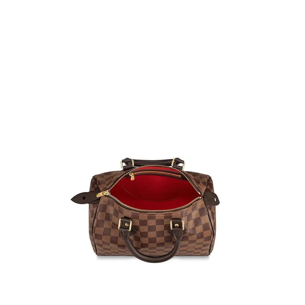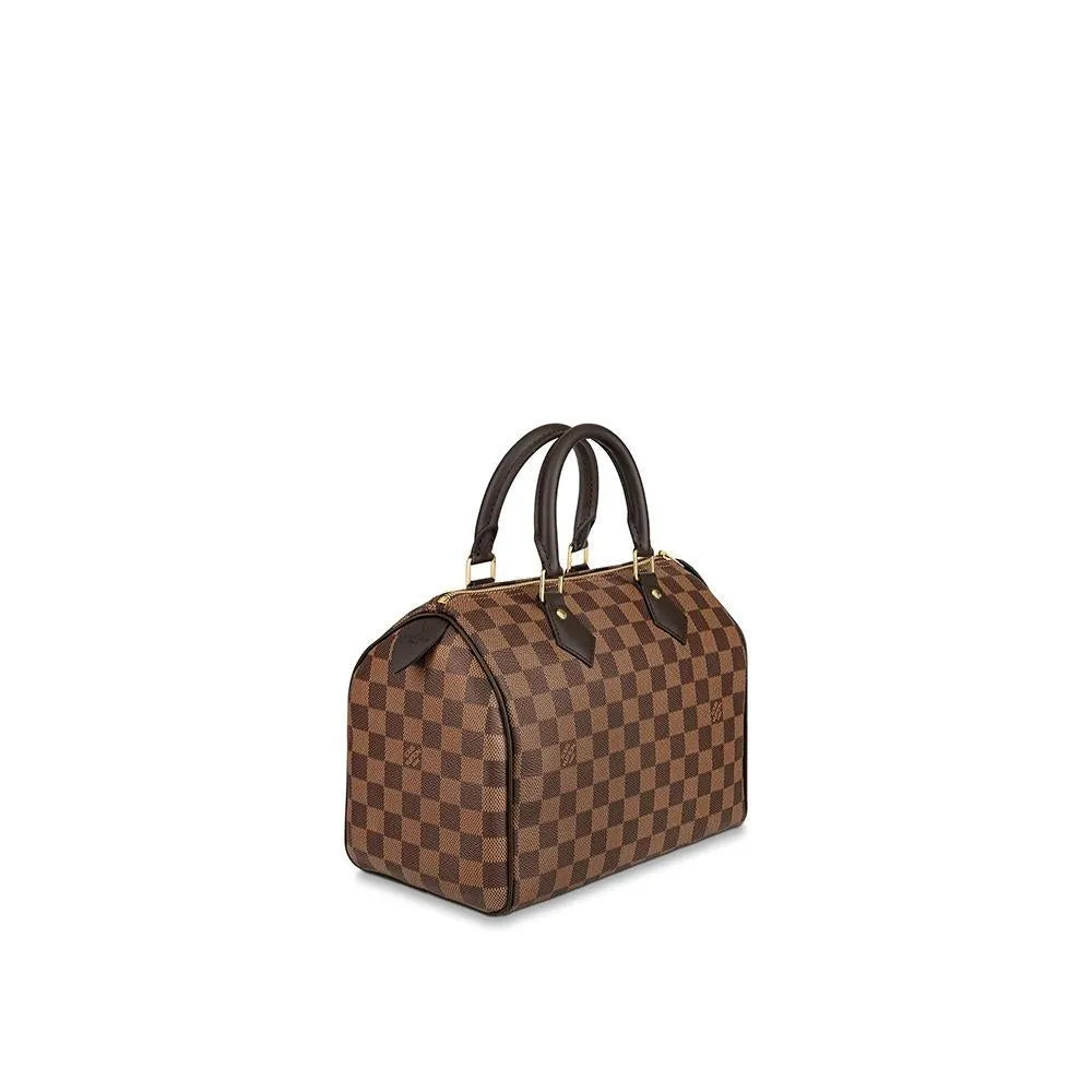 しなやかなダミエキャンバスを使用してエレガントなコンパクトサイズに仕上げた「スピーディ 25」。都会の日常生活に最適なアイテムです。移動手段の加速化に伴い1930年に誕生したバッグ「エクスプレス」。そのアップデートバージョンである「スピーディ」は、独特のシルエット、ロール仕上げのレザーハンドル、シグネチャーを刻印したパドロックに、メゾンのタイムレスなアイコンの名残を留めます。