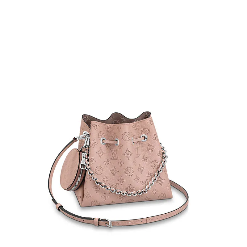 モノグラムパターンをパーフォレーションで描いたマヒナレザーが印象的な「ベラ」。丸みを帯びたコインパースをあしらったコンパクトなバケットバッグです。コインパースの片面にはパーフォレーションで施したミニチュアバージョンのモノグラムパターンが躍り、モダンでトレンディな雰囲気を演出します。洗練されたレザーを編み込んだメタルハンドルと、取外し可能なレザーストラップでさまざまな持ち方をお楽しみいただけます。
