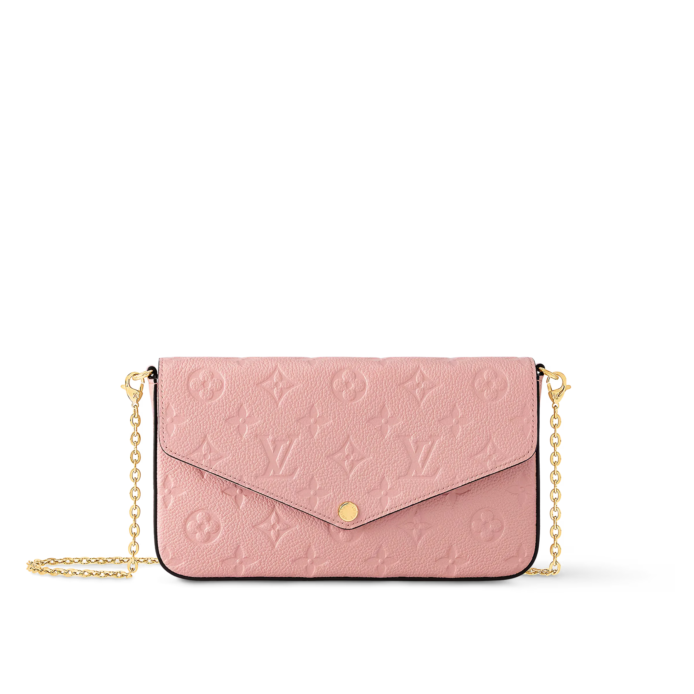 アイコニックなモノグラムパターンのエンボス加工が特徴のモノグラムアンプラント レザーのポシェットフェリシー。エンヴェロップ型のフラップの内側には、1つはファスナー付き、もう1つは複数のクレジットカードスロットを備えた取外し可能な2つのポケットが。現代のライフスタイルにぴったりのアイテムは、取外し可能なチェーン付きでさまざまな持ち方をお楽しみいただけます。