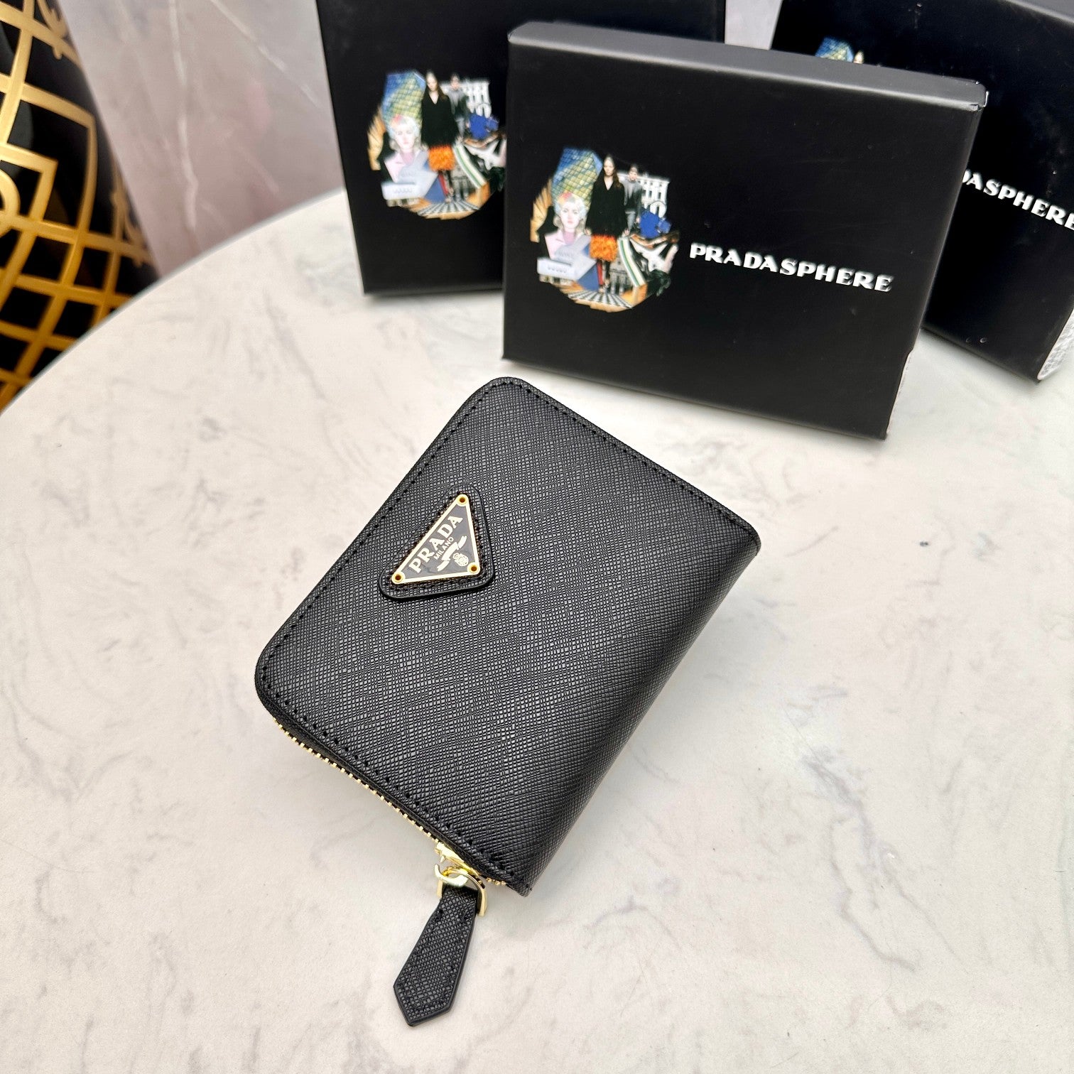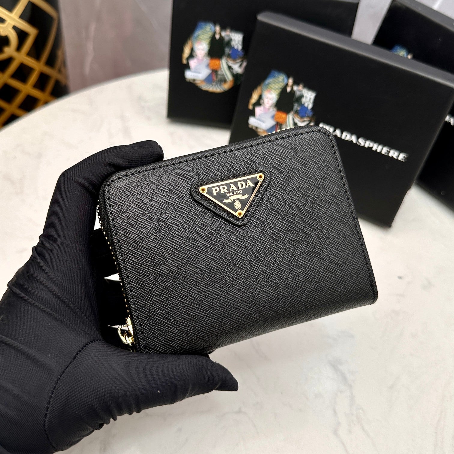 【プラダ】アイコニックな三角プレート付き 小さなジップ財布 春の新作